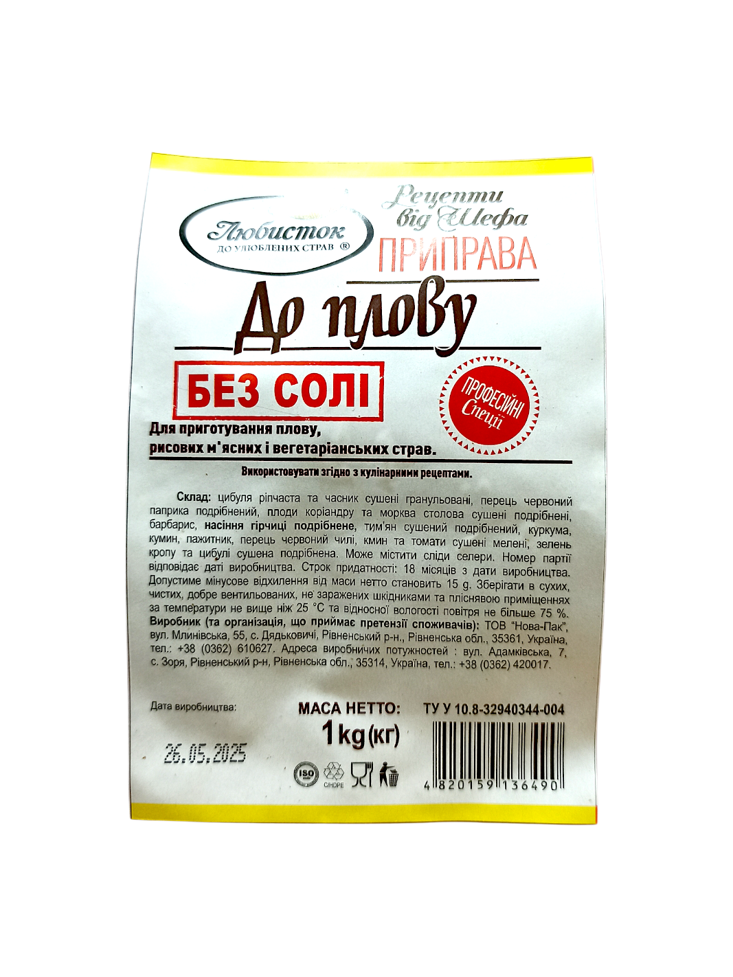 Зазвичай термін придатності приправ "Любисток" становить 18-24 місяці з дати виготовлення, якщо зберігати їх у сухому, темному та добре вентильованому місці при температурі не вище 25°С. Слідкуйте, щоб пакет був щільно закритий після використання для збереження аромату.