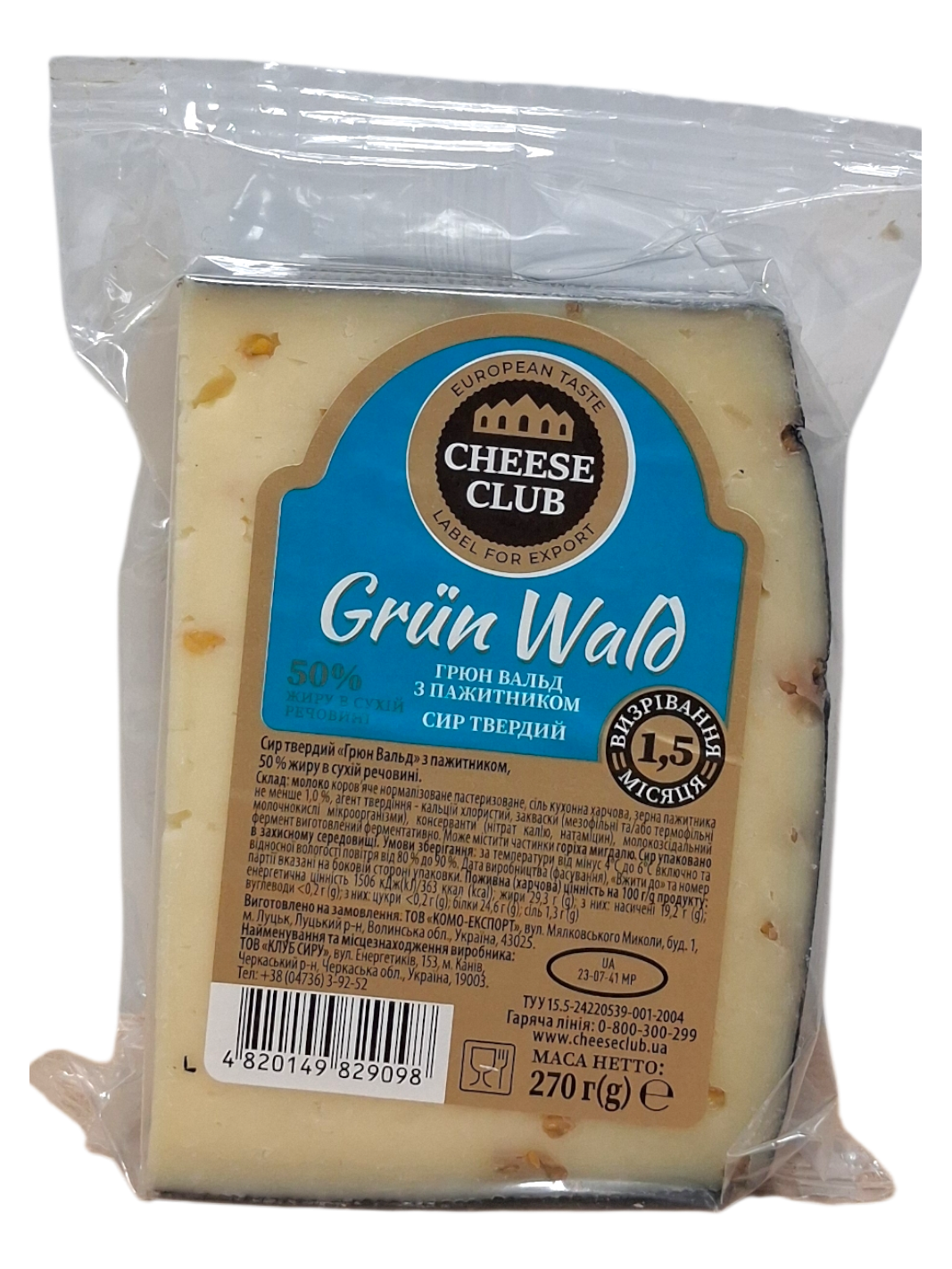 Клуб Сиру Grun Wald Сир твердий 50%, 270 г