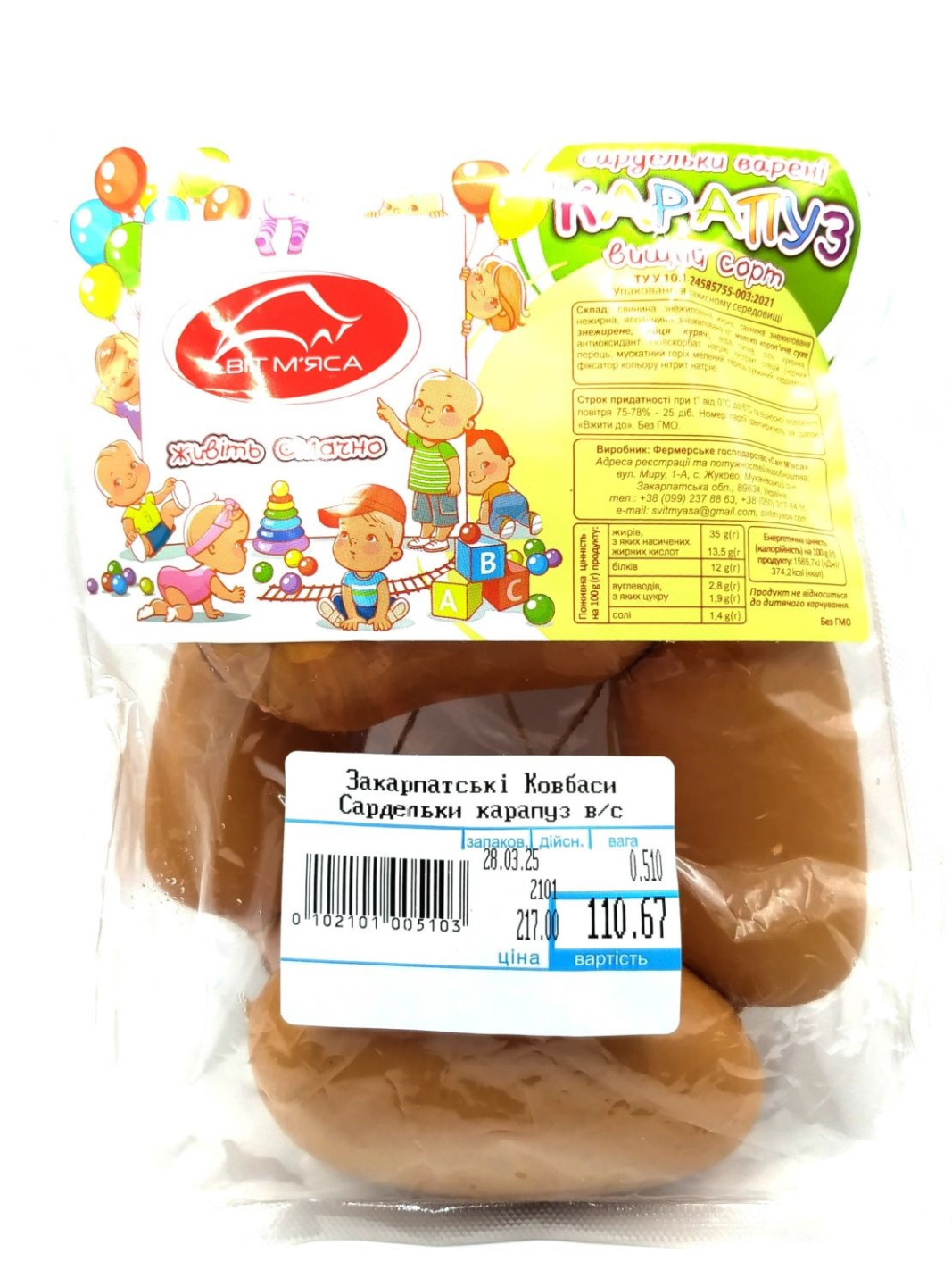Закарпатські Ковбаси Сардельки карапуз в/с