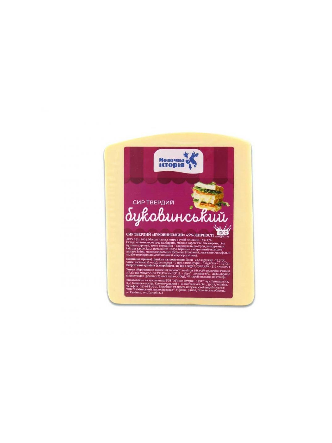 Молочна Історія Сир тверд. Буковинський 45% брус,кг